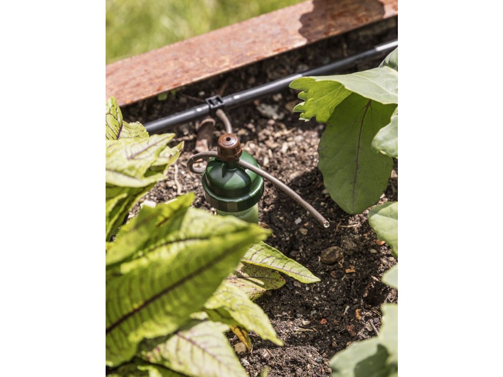 Dobré zařízení na zavlažování. Je potřeba to naplnit vodou, nechat hodinu máčet a potom to pořádně utáhnout, aby voda byla skutečně v celém senzoru. Potom to funguje skutečně dobře. U černé hadice je potřeba počítat s tím, že na konci je nižší tlak. Takže by ideálně měla směřovat s kopce, jinak vám poslední senzory nebudou kapat.
